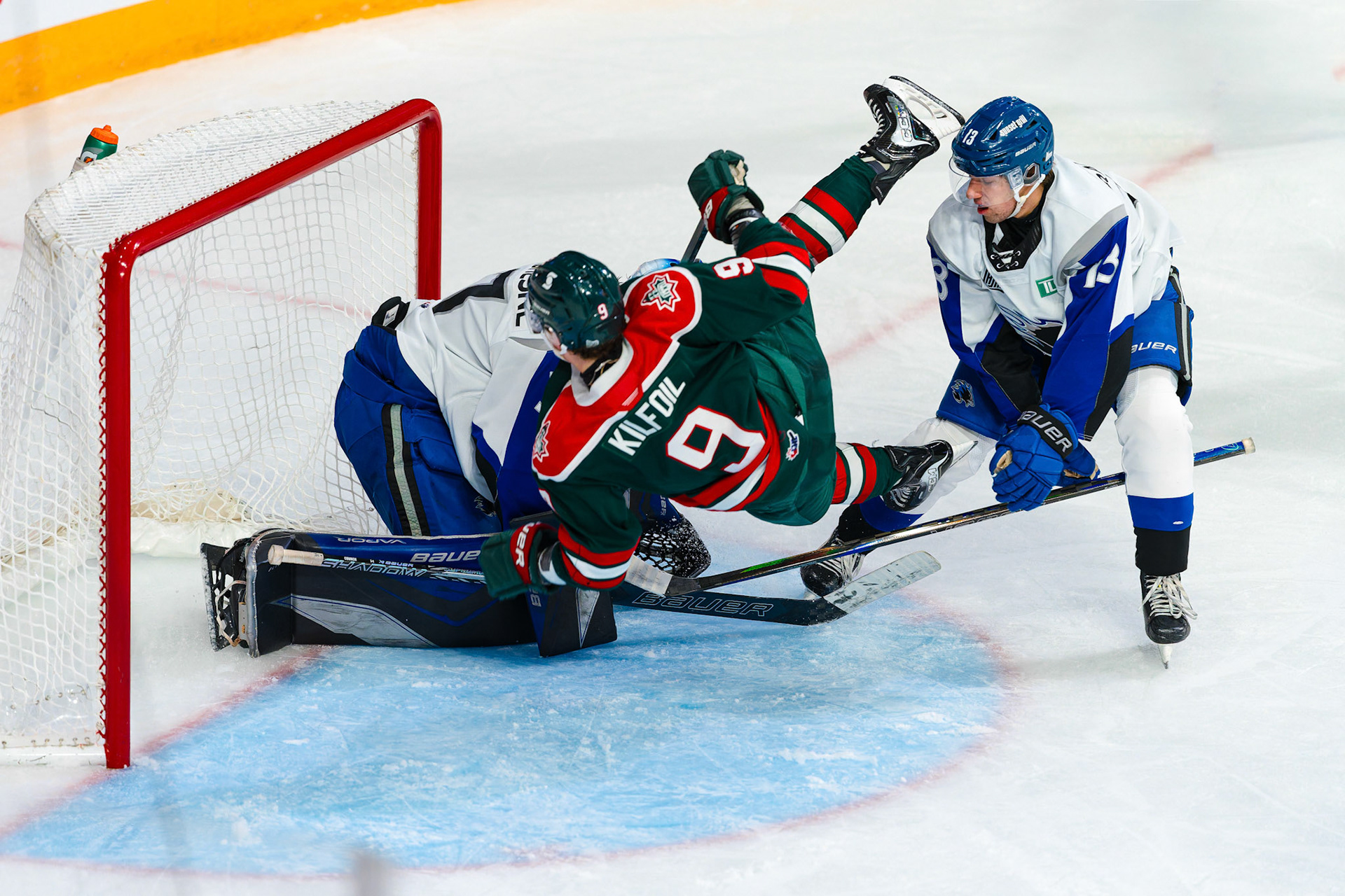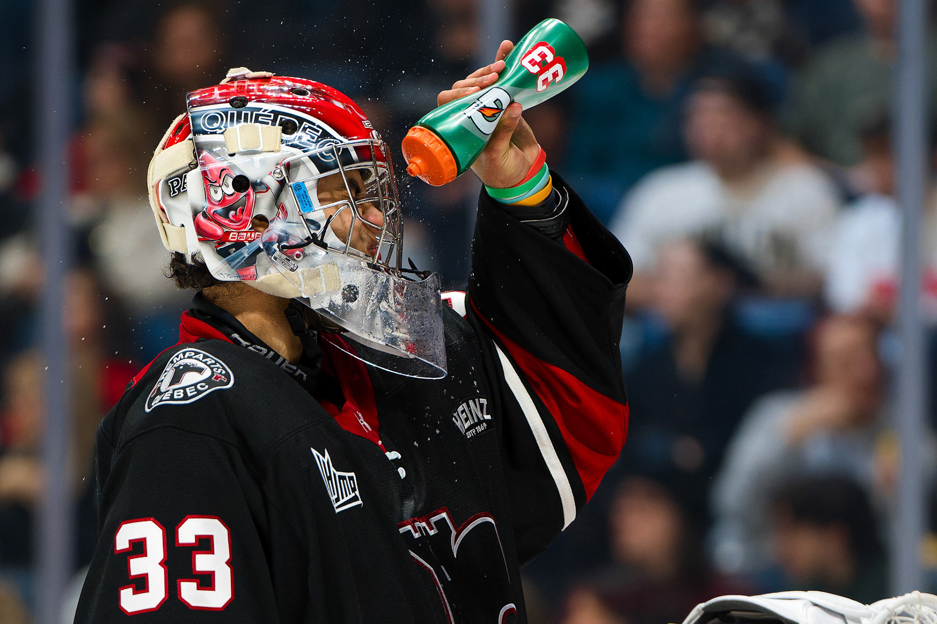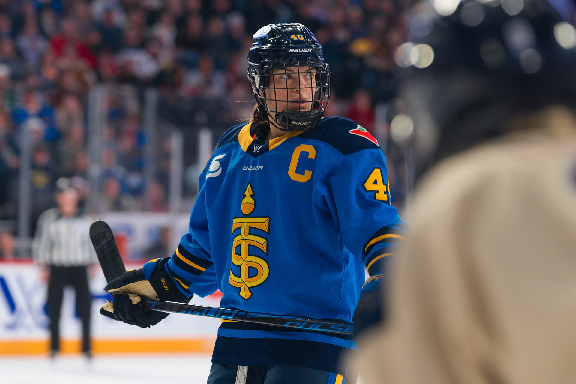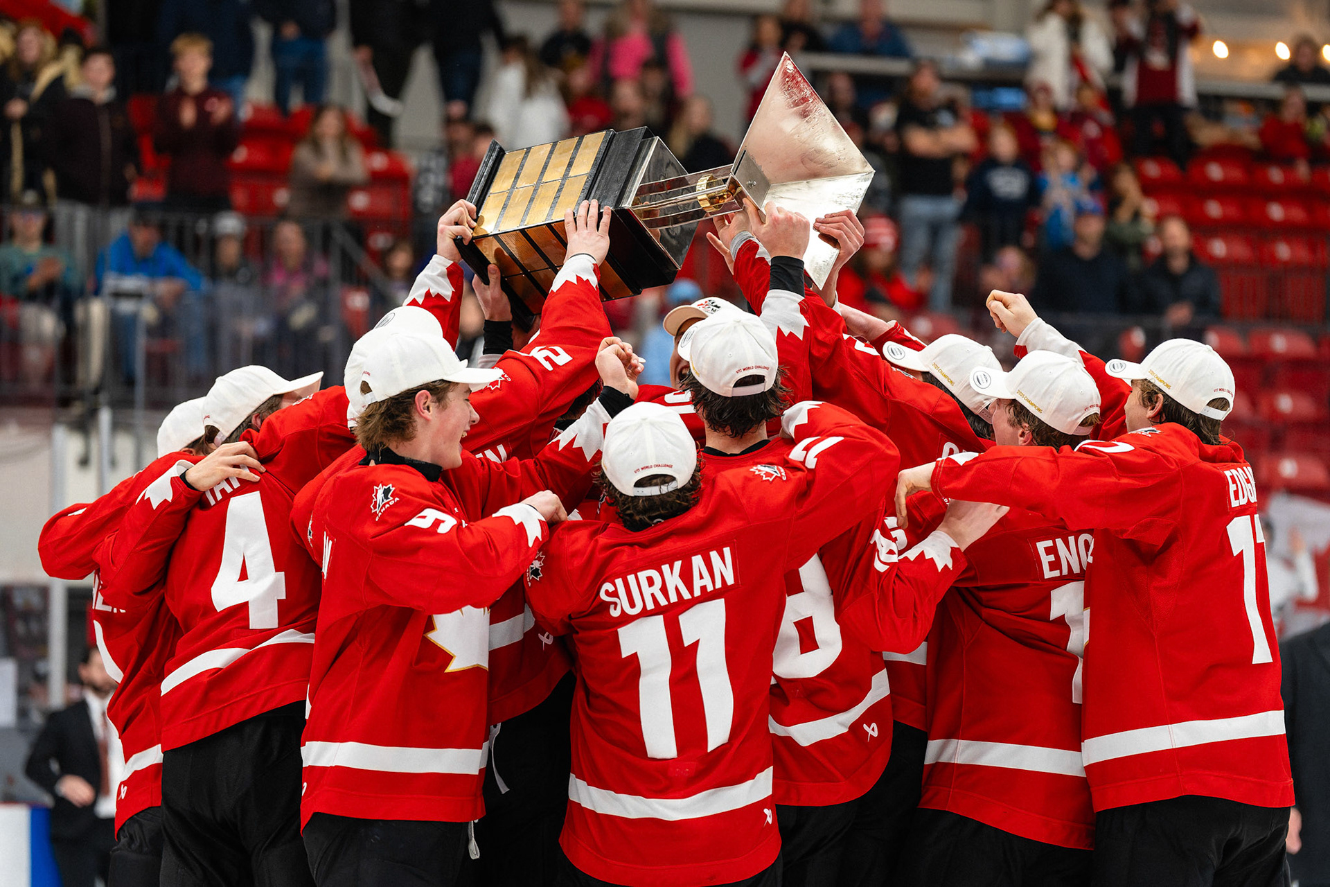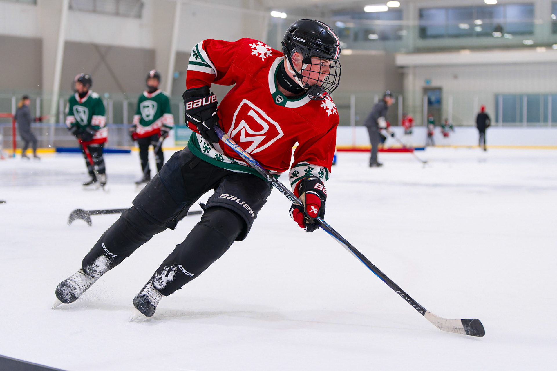 Halifax, Nova Scotia – Eddy Doyle (#51) of The Halifax Mooseheads celebrates his overtime winning goal against the Saint John Sea Dogs at Scotia Bank Centre on December 18th, 2025. Doyle scores in OT, then celebrates with teammates as a fan records the moment on their phone during the post-goal chaos.